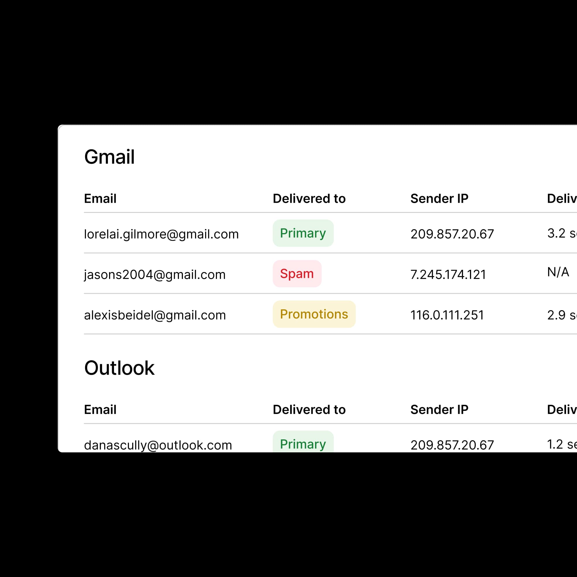 See where your emails are being delivered to at Gmail, Outlook, and other common providers.